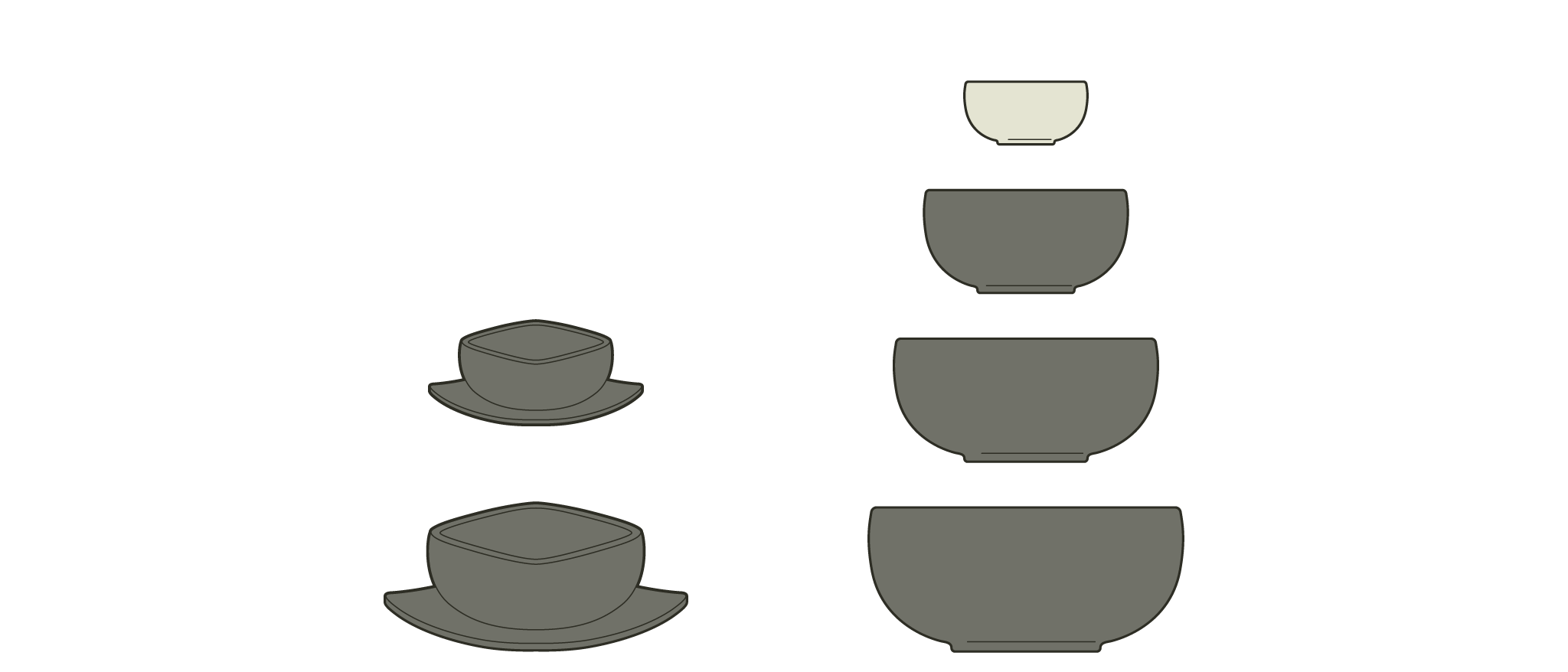 EBI has many items well suited for serving meals with an Asian twist. Deep bowls invite steaming-hot noodle soups, congee or steamed rice as well as cereal and fruit. Tiny bowls are perfect for dipping sauces and prep cooking. Elegant, not-quite-square plates have gently lifted corners that make stunning presentations simple. The smallest plates are ideal for hors d’oeuvres.