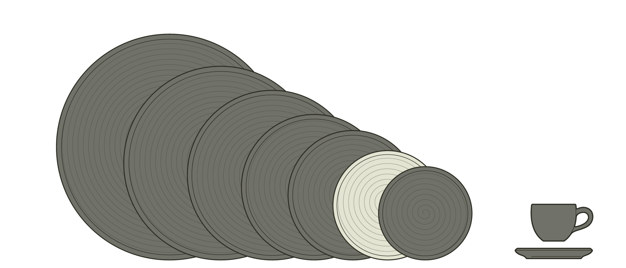 ENSO features a tight spiral carved into the surface of the collection's plates and bowls adding a distinctive visual texture. In the final firing, the glaze melts into the spiral grooves so that the resulting surface is virtually smooth. The bowls’ v-shaped profiles are great for rustic soups, panzanella, or a heap of steaming mussels. With its beveled edge, the Enso collection coordinates well with the Bevel collection.