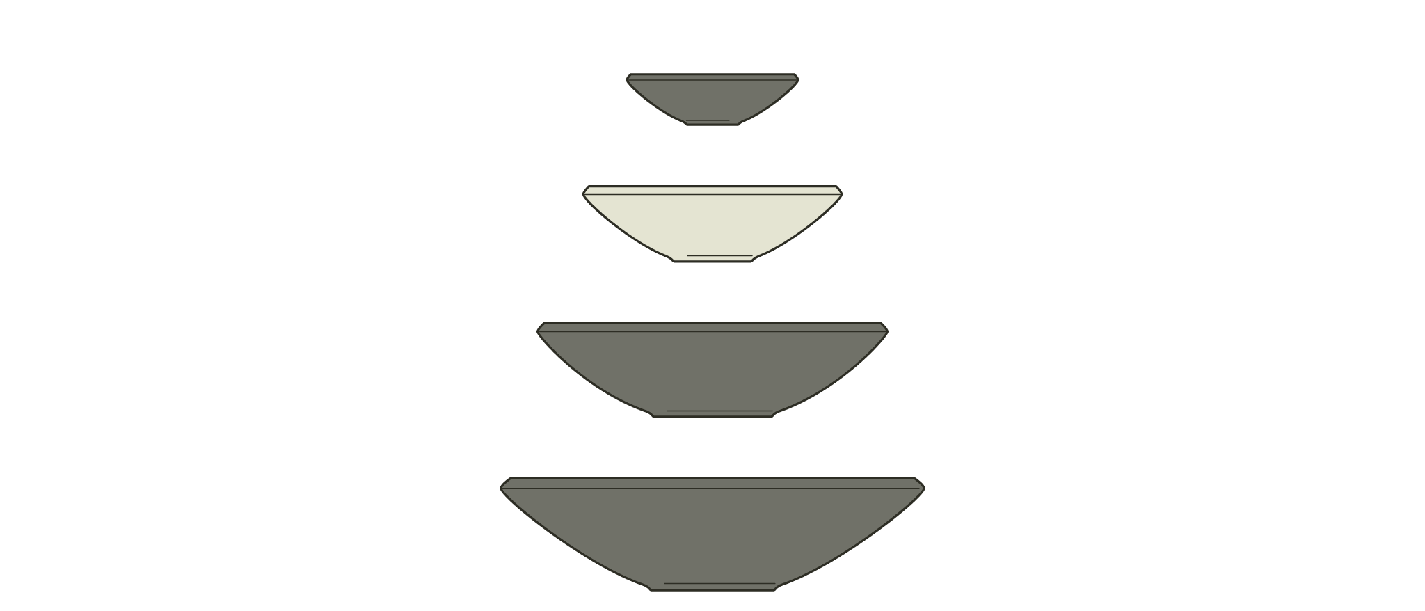 ENSO features a tight spiral carved into the surface of the collection's plates and bowls adding a distinctive visual texture. In the final firing, the glaze melts into the spiral grooves so that the resulting surface is virtually smooth. The bowls’ v-shaped profiles are great for rustic soups, panzanella, or a heap of steaming mussels. With its beveled edge, the Enso collection coordinates well with the Bevel collection.