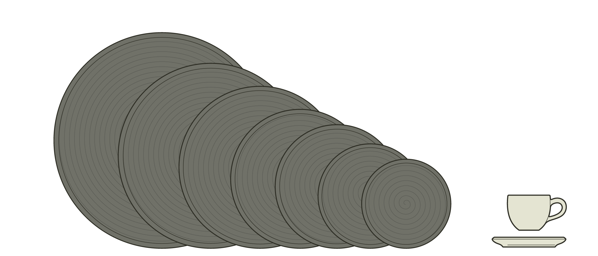 ENSO features a tight spiral carved into the surface of the collection's plates and bowls adding a distinctive visual texture. In the final firing, the glaze melts into the spiral grooves so that the resulting surface is virtually smooth. The bowls’ v-shaped profiles are great for rustic soups, panzanella, or a heap of steaming mussels. With its beveled edge, the Enso collection coordinates well with the Bevel collection.
