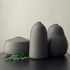 Vases approximately 9" tall (or wide). Hand thrown from colored porcelain, the saturated color comes from the clay itself, not a glaze. Interiors have a clear liner glaze, but exteriors are left unglazed for a velvety matte finish. Weighing between three and four pounds, these are sturdy and stable vessels that resist tipping when filled with flora.