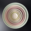 A complete set of Jasmine bowls, ranging from 3" to 13" in diameter. Suggested color combination show all seven of the studio's glazes - mango, ginger, sea, sage, fig , kiwi and clear.
