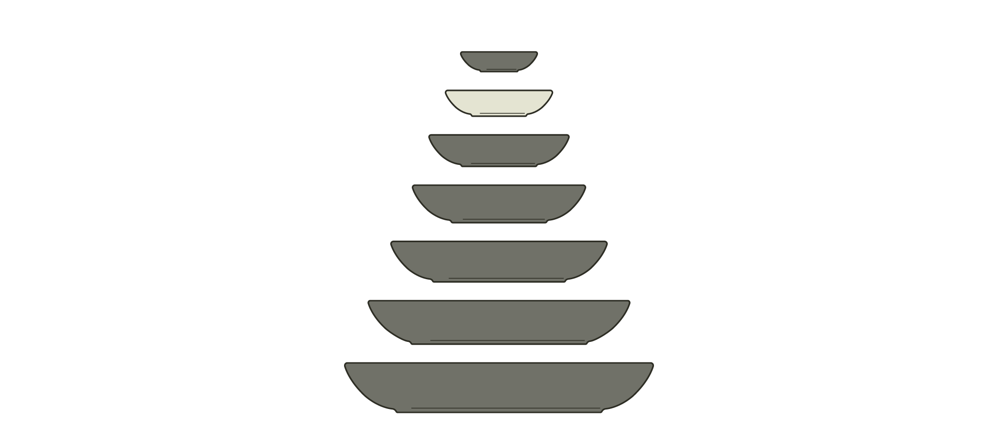 One of seven nesting bowl sizes, this is one of the smallest. Perfect for a small snack, a single scoop of ice cream, or mise en place prep.