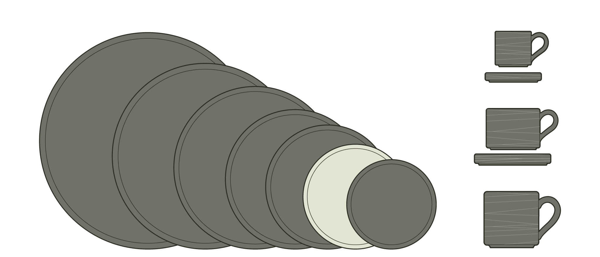 WET GRASS stackable pieces, reminiscent of Massimo Vignelli’s plastic Hellerware dishes, have textured exteriors like blades of grass flattened after a rainstorm. The distinctive, high-sided bowls add drama to the table setting and provide roomy vessels for layered salads. Cooks with an eye for detail will enjoy using Wet Grass plates to showcase seared meats or fish with vibrant, roasted vegetables.