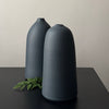 Hand thrown from colored porcelain, the saturated color comes from the clay itself, not a glaze. Interiors have a clear liner glaze, but exteriors are left unglazed for a velvety matte finish. Weighing around four pounds, these are sturdy and stable vessels that resist tipping when filled with flora.